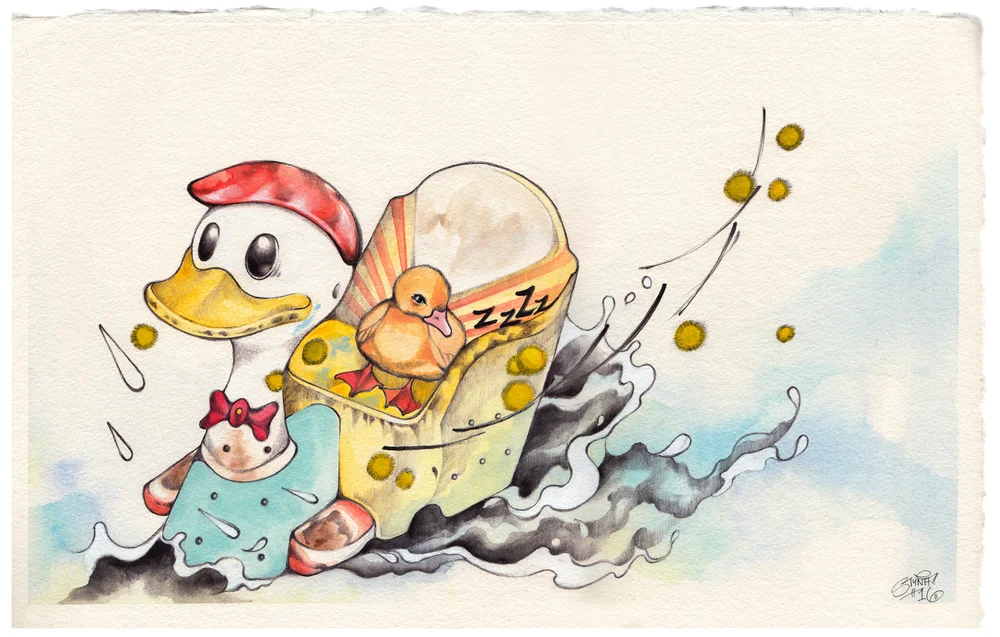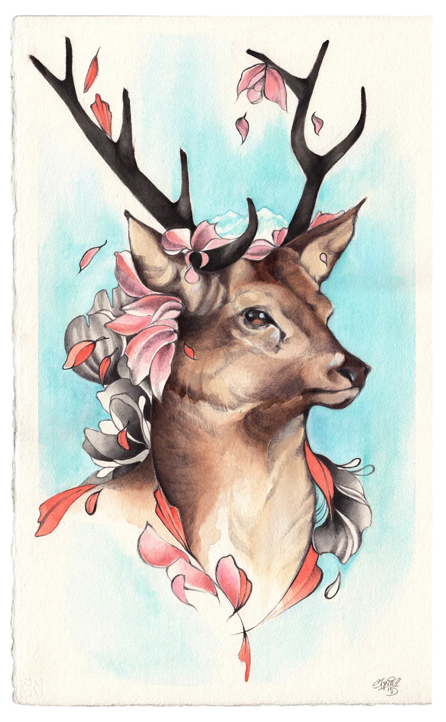 We laughed, we shared stories, and we met late in the evenings leading up to the show. We each created a series of new works using bright colour palettes and traditional mediums of watercolour, ink and acrylic. We explored different perspectives, the magic, mystery, superstition, and dreams of our worlds.
